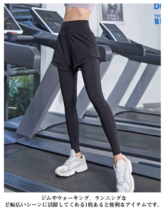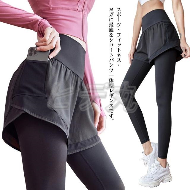 ショートパンツ付き フィットネスウェア スポーツウェア レディース ジム ウェア レギンス スパッツ 一体型 スポーツ ヨガウェア ウォーキング ヨガ ランニング 9分丈 10分丈 S M L LL 大きいサイズ トレーニングウェア おしゃれ 送料無料