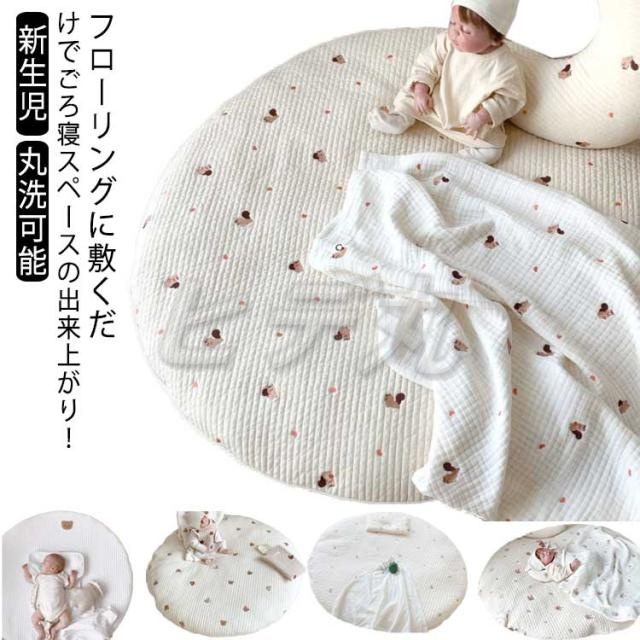 | フローリングに敷くだけでごろ寝スペースの出来上がり! 厚くて柔らかくて、赤ちゃんの夜寝用マットとしておすすめです。遊び用マレイマットにもできます。 また、お子様のお遊びマットとして、おむつ換えやごろ寝、ママのラグマットとしても使えます。 お子様の成長記録の記念撮影や話題の「寝相アート」の背景にもびったりのかわいいデザインのマットです。 | |