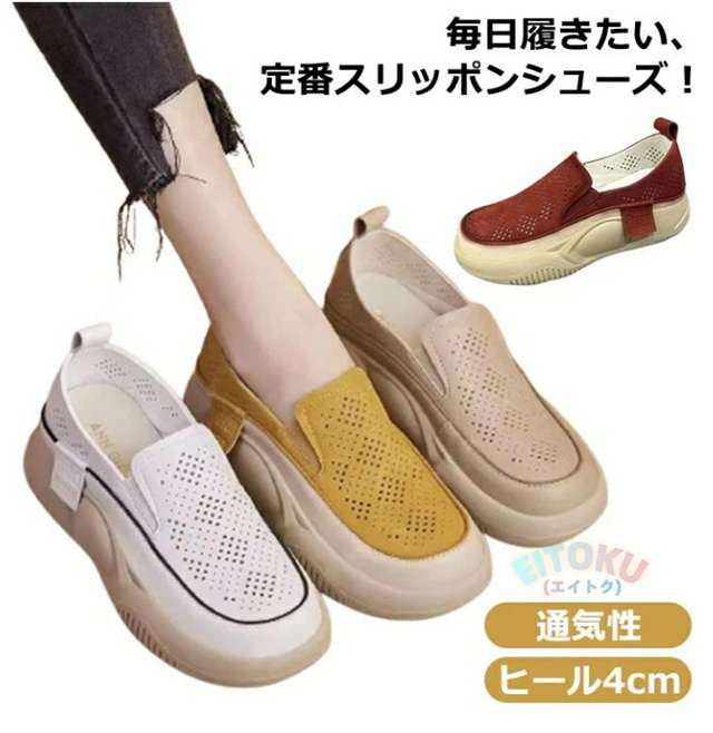 レディース 通気性 反母趾 夏 スリッポン スリッポン 外反母趾 ヒール4cm 靴 スニーカー コンフォートシューズ 靴 厚底スリッポン ローヒール シューズ 厚底 軽量 靴 軽い 厚底スニーカー 身長アップ おしゃれ 防滑 春 夏 秋 痛くない 防水 厚底