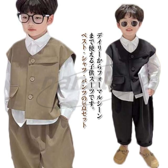 3点セット フォーマルスーツ 男の子 子供スーツ ベスト付き 長袖 シャツ パンツ キッズ フォーマル 七五三 男の子スーツ おしゃれ 子供服 男の子 上下セット カジュアル 卒業式 入学式 発表会 入園式 結婚式 スーツ 男の子 80 90 100 110 120 130 140cm
