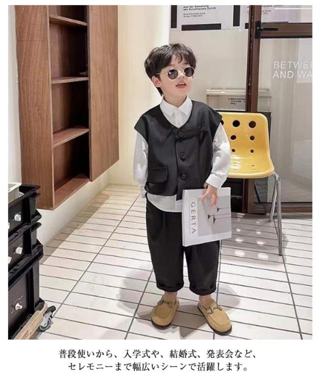 | デイリーからフォーマルシーンまで使える子供スーツです。ベスト・シャツ・パンツの3点セット 凛々しく見えること間違い無いでしょう!卒園式や入学式、七五三に結婚式や発表会。 色んなフォーマルシーンで活躍する、セットアップ子供服。 生地といい、デザインといい、お客様に良い体験をできるように努力します。ちょっと大人っぽいデザインが男の子らしさをアップし、子供をより格好よくして、足もまっすぐに長いです。 丈夫で通気性があり、耐久性があるので、長く使いたい人におすすめです。 普段使いから、入学式や、結婚式、発表会など、セレモニーまで幅広いシーンで活躍します。 | |