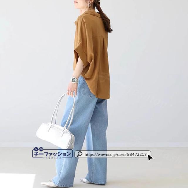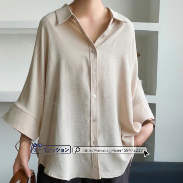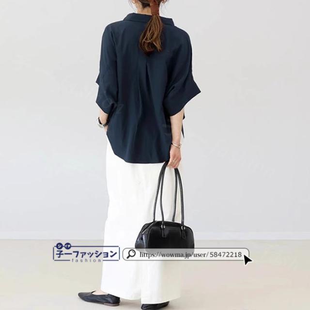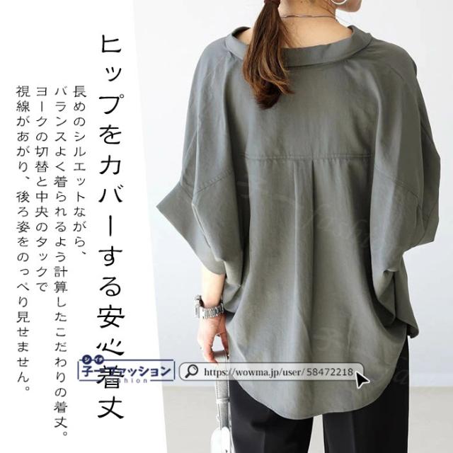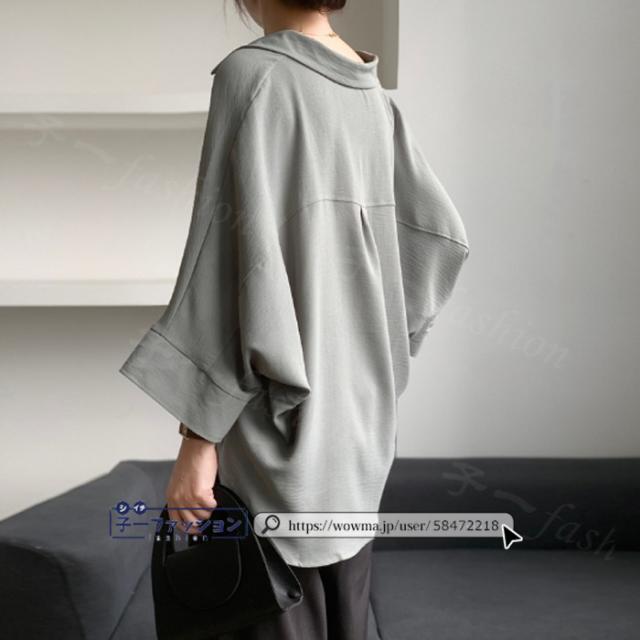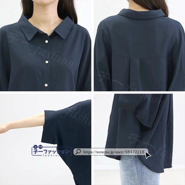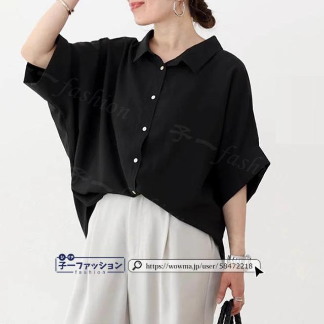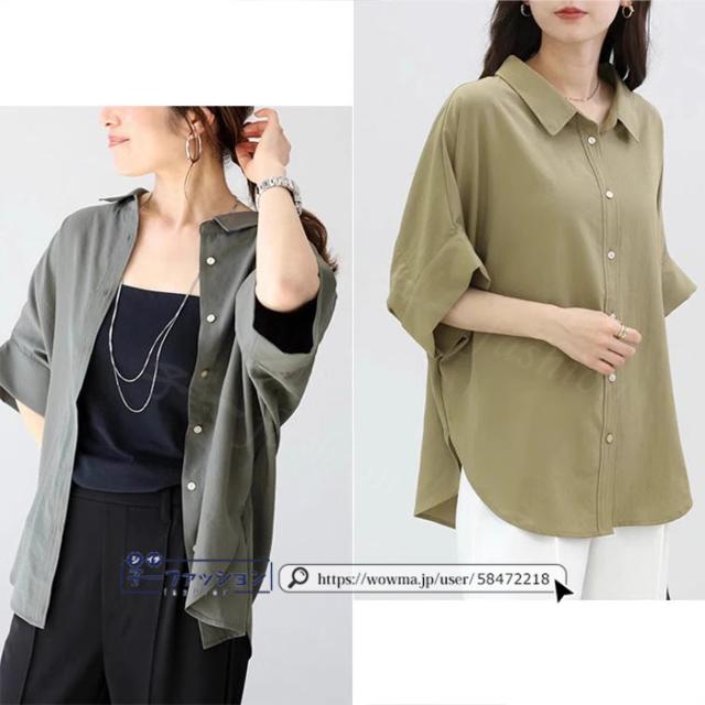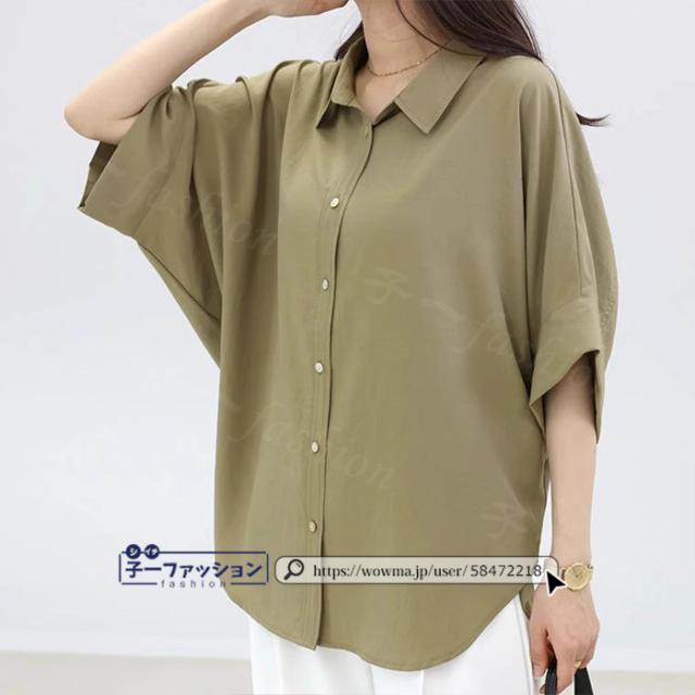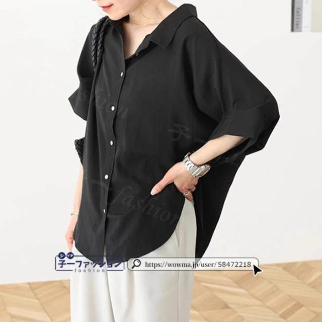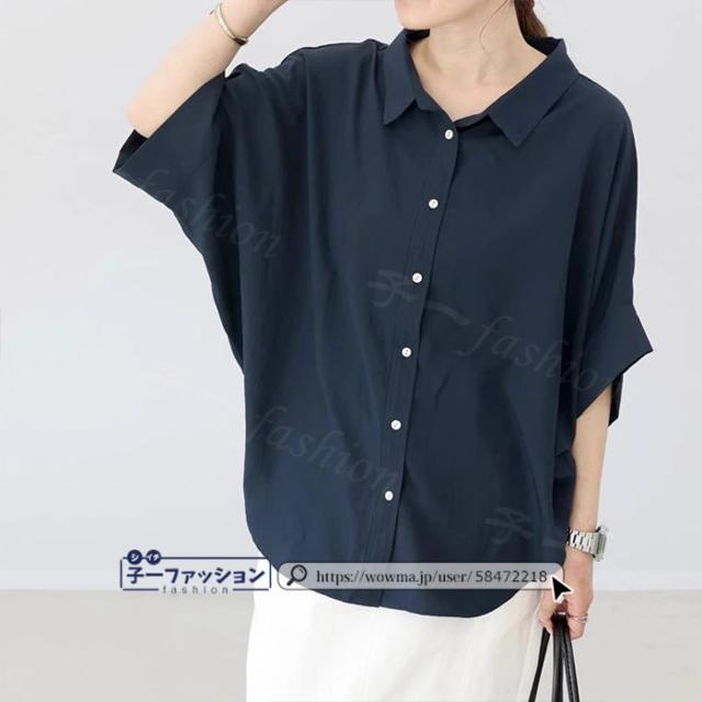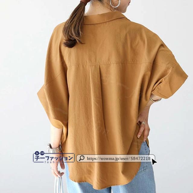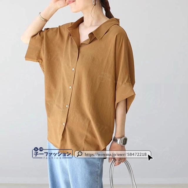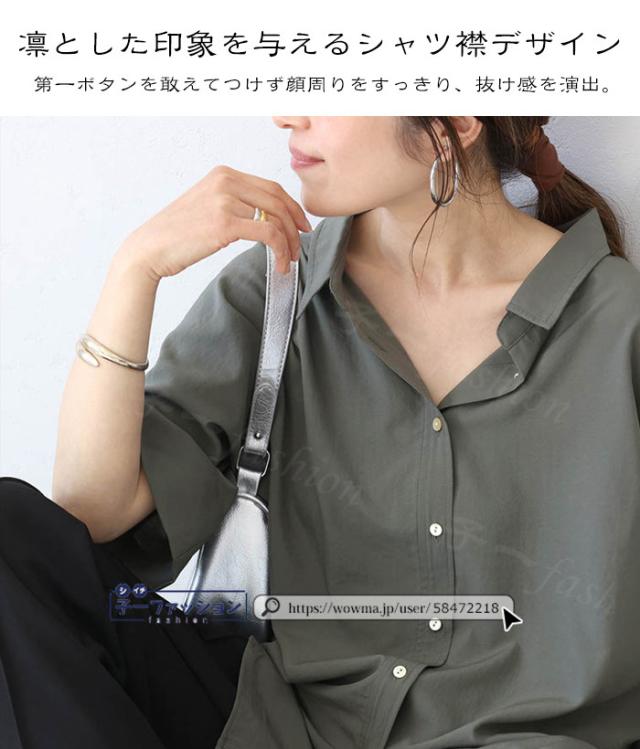 ブラウス レディース シャツ 半袖 前開き 冬新作 ブラウス トップス 無地 前開きシャツ カットソー シンプル Tシャツ カジュアル 体型カバー きれいめ 通勤 OL オフィス 通勤 ゆったり 秋冬