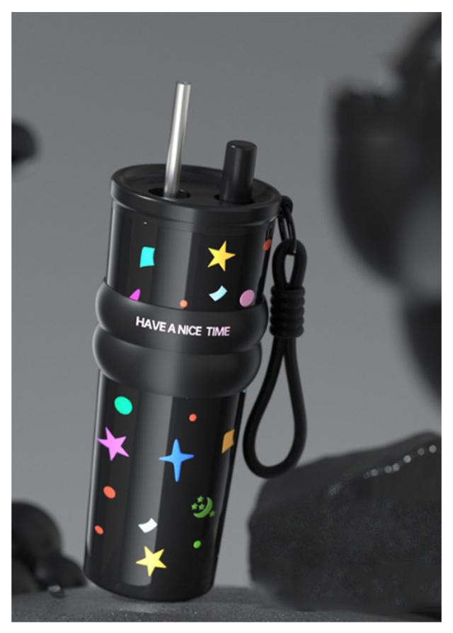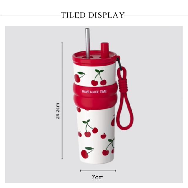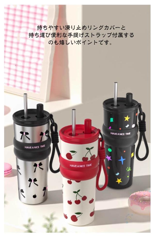 | 伸縮ストロー&ストラップ付きタンブラー。 セラミックコーティングタイプはステンレス特有の金属臭を移すことなく味を守る。 真空断熱構造で、外からの熱を伝えず、保温・保冷効果抜群で、夏でも冬でも、美味しい飲み物を楽しめます。 伸縮できるストロー、ストローキャップを閉めると、タンブラーを逆さまや横置きにしても漏れないから、かばんの中に入れて持ち運びのに便利で安心◎ストローもいちいち取り出す必要なく、便利で衛生的。 ストロー付きタンブラーは目線を下げずに飲み物をのむことができるので、オフィスシーンやデスクワークに最適です。容量はお好きなドリンクをたっぷり楽しめる710mlです。 ストローを使う時はキャップを収納口に回すと締まるから、キャップの紛失防止に。 車のドリンクホルダーに入れるサイズ感、ドライブやお出かけ、通勤など時も大活躍。 持ちやすい滑り止めリングカバーと持ち運び便利な手提げストラップ付属するのも嬉しいポイントです。 茶こし玉もプレゼントいたします。美味しい花茶な紅茶も楽しめます。 | |