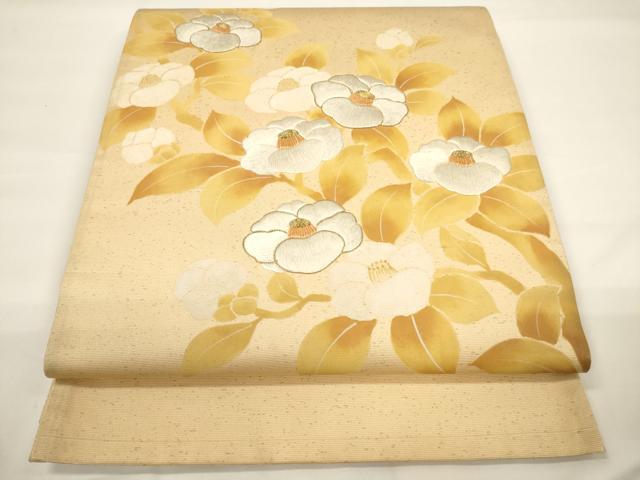平和屋着物▼太鼓柄袋帯 駒刺繍 刺繍 牡丹文 引箔 正絹 逸品 CAAU5977ak