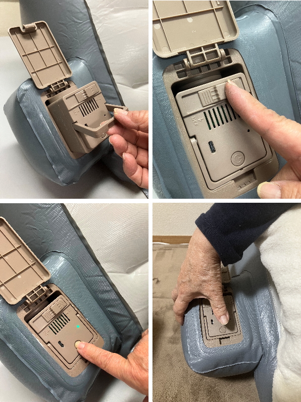 旧タイプに比べて空気の出し入れをを行うエアーポンプユニットを充電式のコードレスタイプに変え、場所を選ばず使用できるようになりました。普段お使いの布団の下やベッドマットレスの下に本製品を敷くだけで、電動ベッドのように上半身の昇降を可能にします。お好みの角度に無段階調節可能で角度調節0〜40度まで調整できます。どこでも使えて便利なUSB充電式!空気を抜けばコンパクトになります。空気を膨らませた時に、エアー枕部がズレていかない様に『ズレ防止シート』が装着してあります。【注意事項】※折り曲げることができない硬質のマットレスは使用できません。※USBケーブルは付属済み。※ACアダプターは付いておりません。