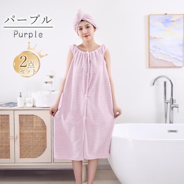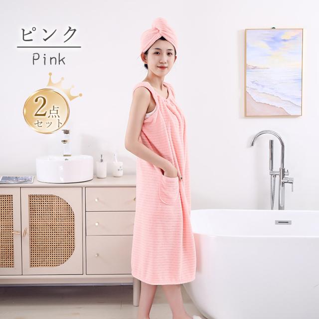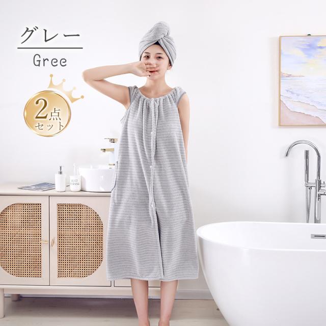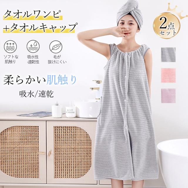 バスタオル タオルキャップ 2点セット 着るタオル バスローブ レディース タオルワンピース ラップタオル ポケット付 速乾 プールタオル お風呂