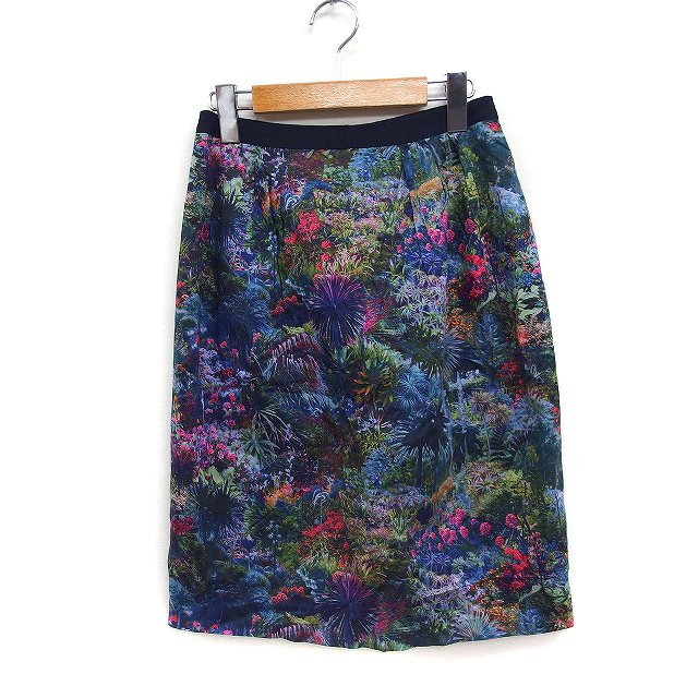 【中古】アナイ ANAYI ボタニカルプリント タイトスカート ひざ丈 コットン 綿 38 ネイビー 紺 /FT6 レディース
