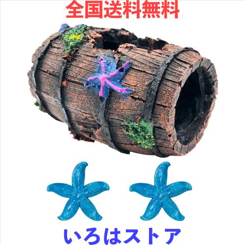 アクアリウム用 樽型 隠れ家 小型 オーナメント 樹脂製 水槽 オブジェ 飾り 魚 装飾品 雰囲気作り樽型x1個 ヒトデx2個