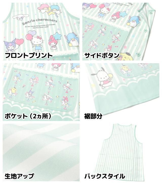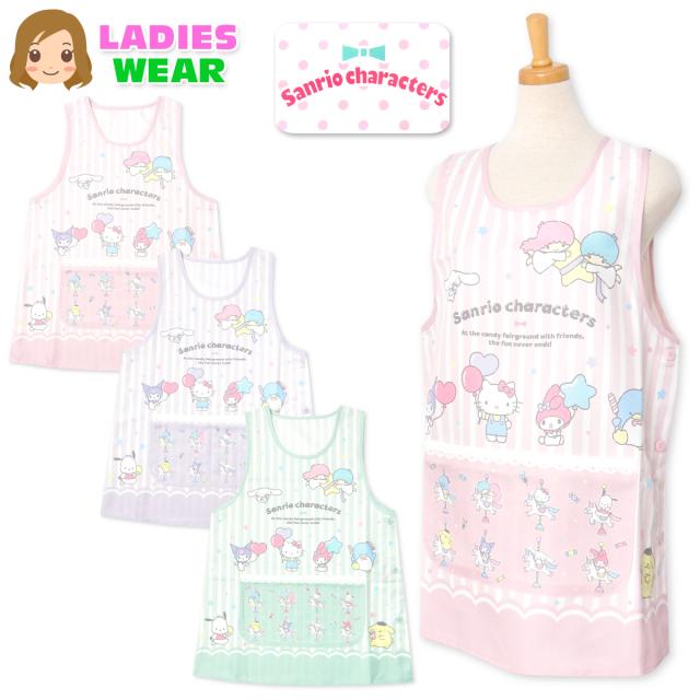 【送料無料】婦人 レディース 保育士 ラン型 エプロン Sanrio サンリオキャラクターズ サイドボタン留め ポケット付き 大人用 sl-0663【メール便対応】