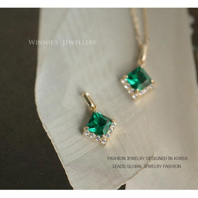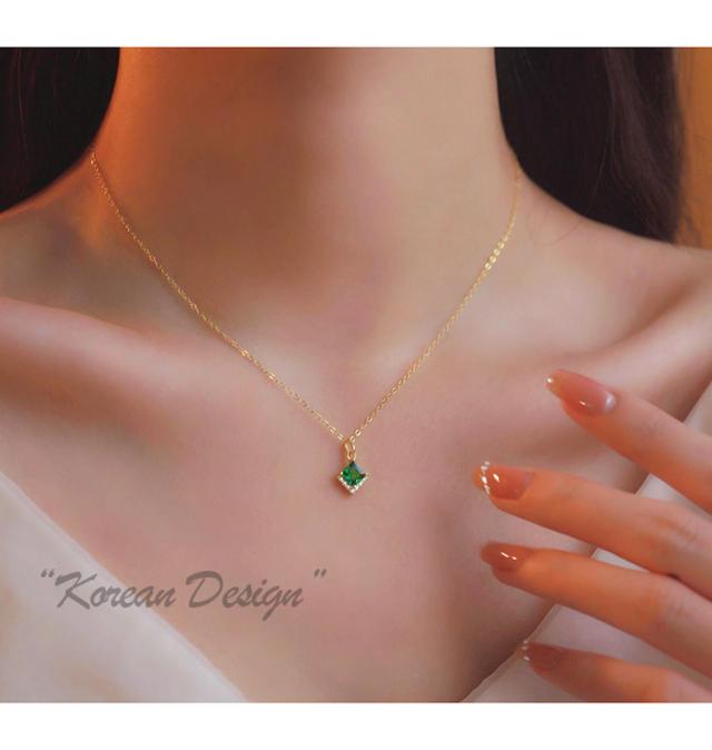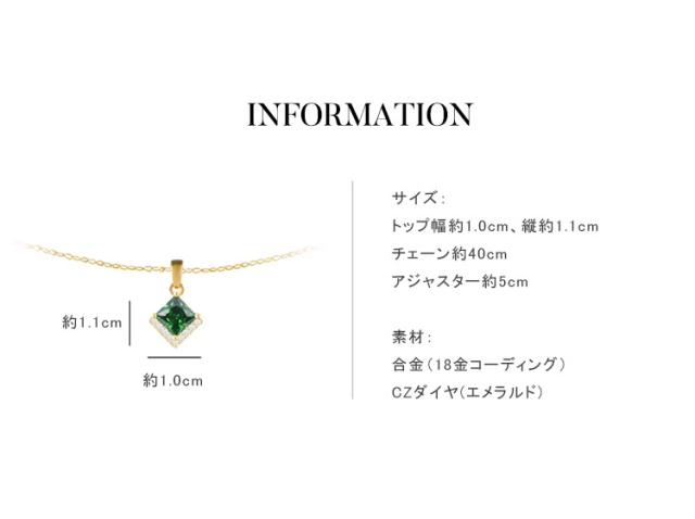 ネックレス レディース エメラルド 一粒 CZ ダイヤモンド 小ぶり ニッケルフリー アクセサリー ジュエリー 上品 大人 可愛い 人気 シンプル ポイント消化