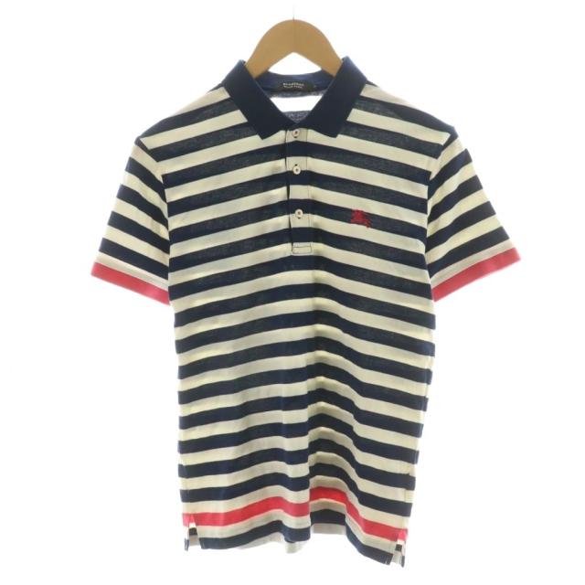 【中古】バーバリーブラックレーベル ポロシャツ 半袖 ボーダー ロゴ 刺繍 2 ホワイト ネイビー D1P43-542-29 /NQ