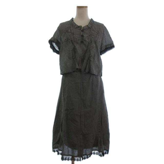 【中古】未使用品 t.b センソユニコ タグ付き セットアップ ブラウス スカート ギンガムチェック 黒 白 38 ■FF