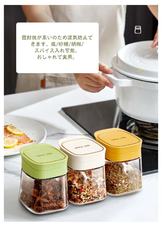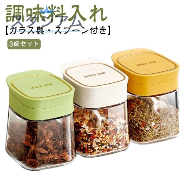 調味料入れ 3個セット ガラス製 スプーン付き 調味料ボトル 調味料ポット 大容量 スパイスジャー 塩入れ 砂糖入れ 調味料ケース スパイスボトル 保存容器 おしゃれ 収納 使いやすい 湿気防止 調味料容器 新生活 詰め替え 衛生的 スパイス入れ