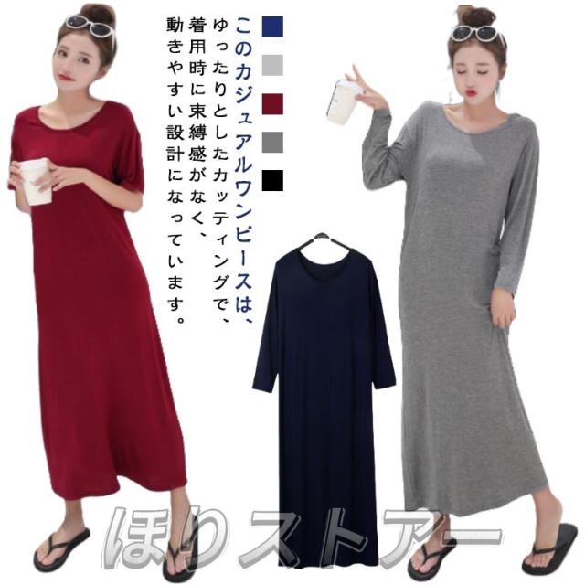春夏 体型カバー マキシワンピース ワンピース 夏 半袖 ロングワンピ ロング丈 レディース Tシャツワンピース 春 シンプル 長袖 ロング リラックス 無地 大人 カジュアル おしゃれ 楽ちん 可愛い ワンピース きれいめ 着回し 50代 40代 30代 20代 おしゃれ