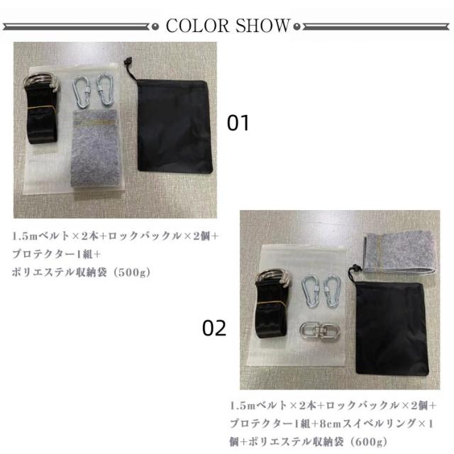 | ブランコやハンモックなどの固定用のベルトです。巻きつけてカラビナで固定するだけで簡単に設置できます。 【取り付け簡単】屋外でハンモックを吊るす場所がない時にどうぞ。木や柱などに簡単に固定出来ます。ベルトを木に数回巻き、カラビナの端を金具に通して固定すればOK。 【高品質なカラビナ&ベルト】ベルトもカラビナも頑丈で、ハンモックだけでなく、ブランコなどにもオススメ。 【収納袋付き】商品全てを収納できる巾着袋が付いてくるため、旅行やアウトドア、レジャー、キャンプetcどこにでも持っていけます。 【他にも用途があるかも】固定用ベルトとしてだけでなく、ロープや災害時の荷物転倒防止用にもどうぞ。物を吊ったり、縛ったり、固定するための用途としても使用できます。 | |