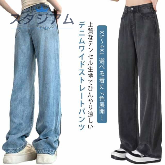 ワイド デニムワイドパンツ 薄手 ひんやり リラックスパンツ 涼しい レディース 大きいサイズ ボトムス 夏 XS-3XL デニム ワイドパンツ ストレート デニムパンツ テンセル 細見え パンツ ロング丈 ジーンズ ハイウェスト 夏用 ジーパン 接触冷感 冷感