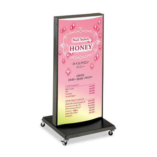上部まで光るアクリル成形型のアール形状が人気のスタンドサインです。環境に配慮した直管式LEDです。