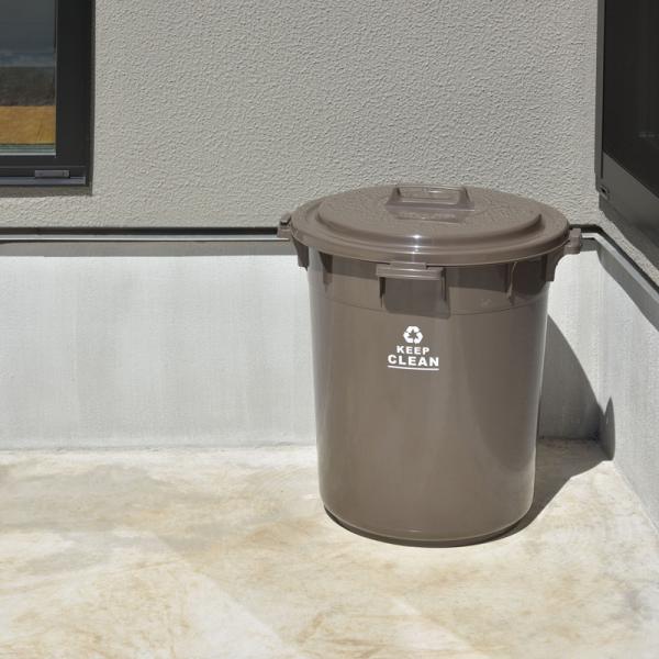 ゴミ箱 45L 丸型 フタ付き ロック機能付き ポリプロピレン 丸洗い おしゃれ 屋外 分別ゴミ箱 アースカラー ブラウン LFS-765BR