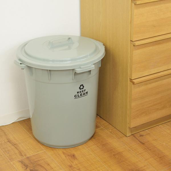 ゴミ箱 45L 丸型 フタ付き ロック機能付き ポリプロピレン 丸洗い おしゃれ 屋外 分別ゴミ箱 アースカラー グリーン LFS-765GR