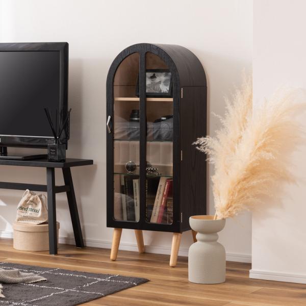 ●洋風のアンティーク扉のような、可愛いフォルムのコレクションシェルフ。