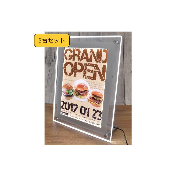 LEDライトパネル ポスターフレーム A4 【5台セット】 アクリルフレームLEDパネル 角型 薄型 電飾看板 店舗用看板