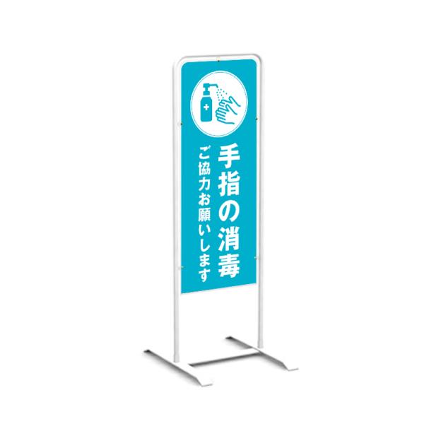 手指消毒看板 看板 スタンド看板 立て看板 屋外 デザイン込 スチール製 マグネット チャオ M ホワイト 白_008 案内看板 店舗看板 誘導標識