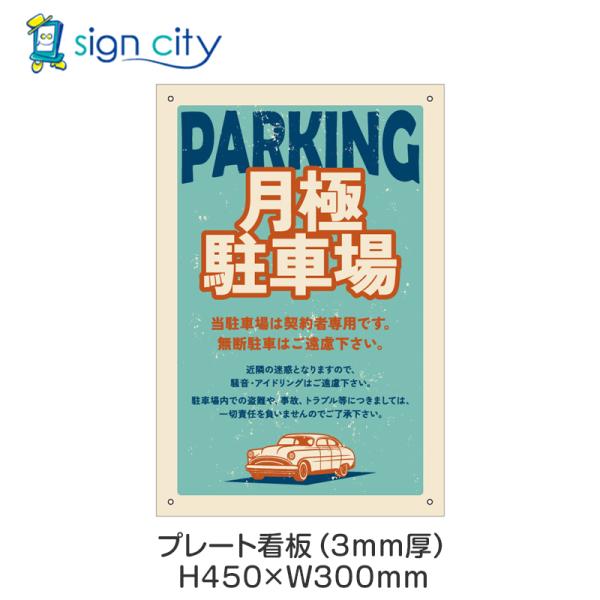 プレート看板 駐車場 看板 注意書き おしゃれ 屋外 アルミ複合板 300X450mm 縦 049_月極駐車場E_ブルー