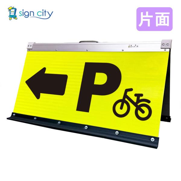 駐輪場看板 矢印看板 高輝度反射 折りたたみ看板 大 (450X900) 黄 片面 025Y90S_駐輪場左矢印(←) スタンド看板 立て看板