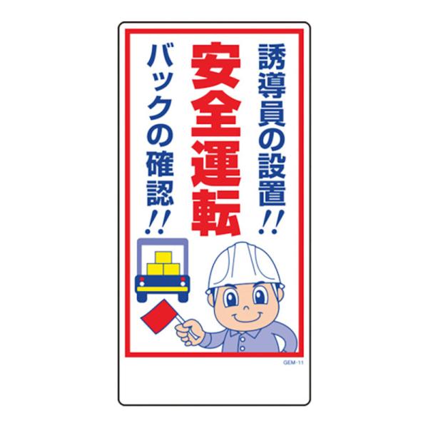 マンガ標識 PP 1mm 300×600 角R 四隅穴 工事看板 工事用看板 標識 看板 安全用品 保安用品 GEM-11 安全運転