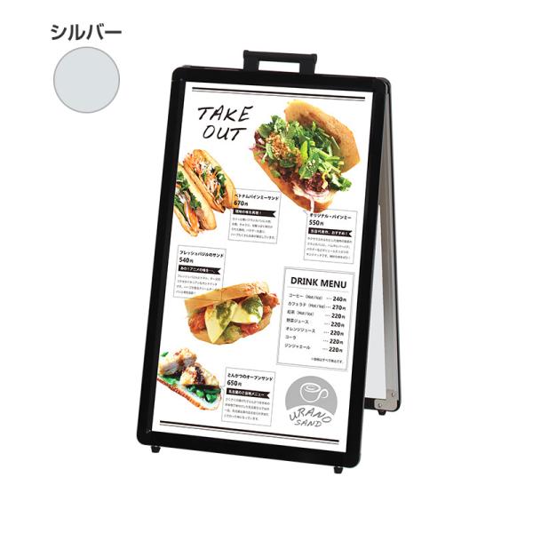 A看板 スタンド看板 ポスタースタンド AW-427 両面 シルバー ファースト FIRST 取っ手付き 看板 キッチンカー 移動販売 フェス
