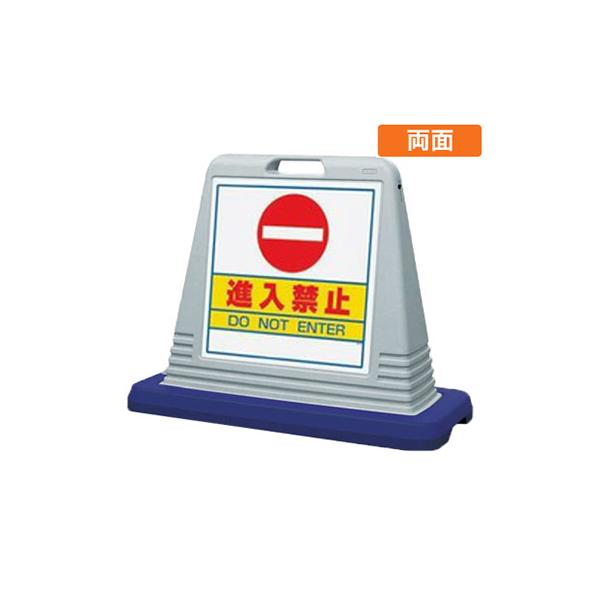進入禁止看板 スタンド看板 樹脂看板 サインキューブ 874-052AGY 「進入禁止」 両面 グレー 屋外用 工場 駐車場 駐輪場 店舗
