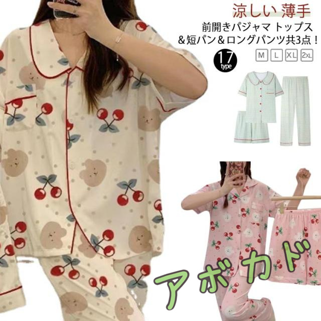 | 前開きパジャマ トップス&短パン&ロングパンツ共3点! テーラー襟ですっきりとした前開きタイプです。前開きなので着脱も楽ちん! 吸湿・通気性に優れており、汗をかいてもサラっとして快適です。 薄手だから、暑い夏でも快適に過ごせます。ゆったりシルエットで着心地ラクチンです。 | |