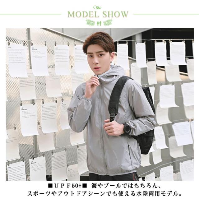 | 【薄手でしっかりUVカットできるパーカー!】 ■UPF50+■ 海やプールではもちろん、スポーツやアウトドアシーンでも使える水陸両用モデル。 速乾性に優れた素材で、汗や水を吸収していつでもサラサラの着心地。また、軽量・コンパクトでかばんの中にも入れとけて、持ち運びもラクラク! シンプルなカラーだから幅広い方にオススメ! 通勤通学の時も日焼け止め用服としてtシャツの上に羽織るのもいいですし、寒すぎる冷房の中に必須のアウターとしても便利です。 | |