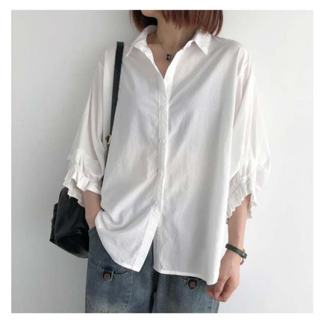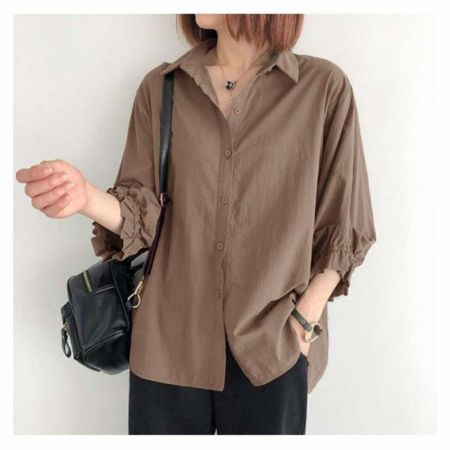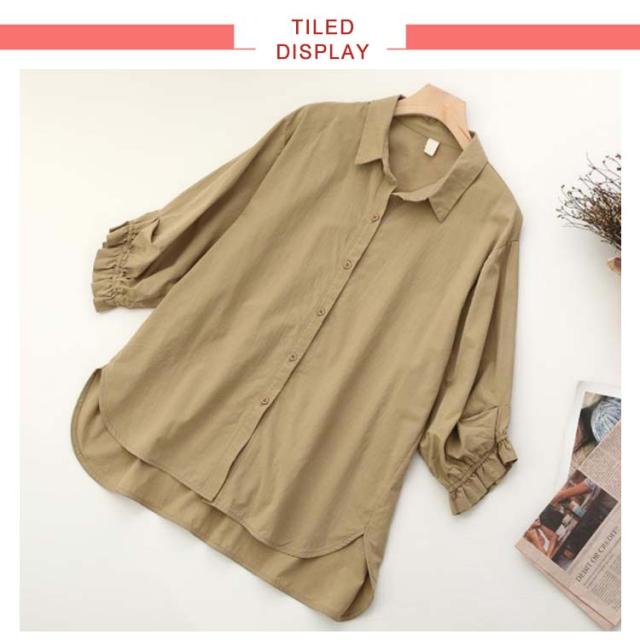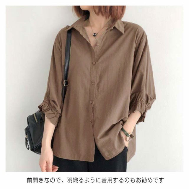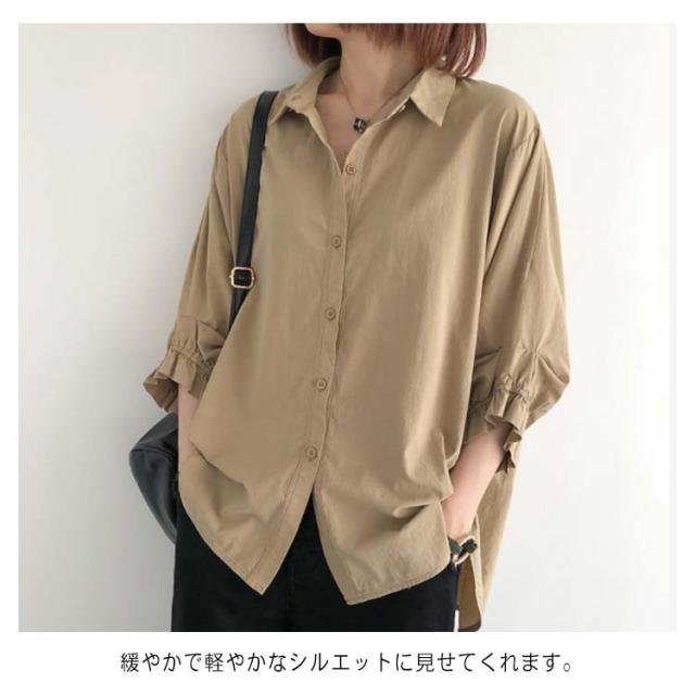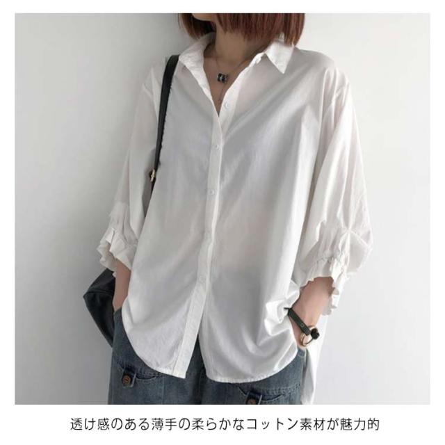 送料無料 全4色×6サイズ ドルマンスリーブ シャツ ブラウス 半袖 七分袖 7分 レディース 綿 コットン トップス スカラップ 春 夏 秋 シンプル 無地 オフィス 通勤 かわいい おしゃれ 30代 40代