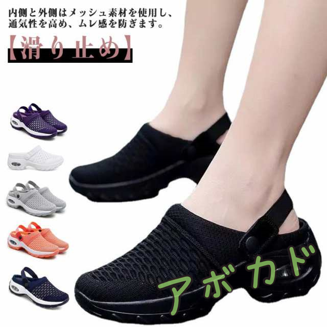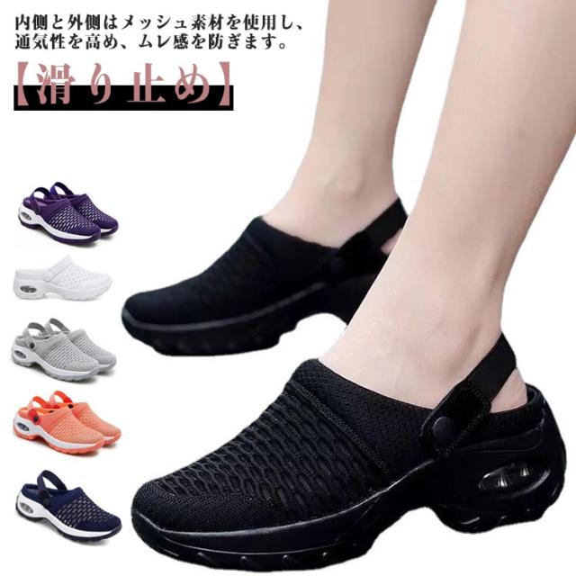 オフィスサンダル 厚底 かかとなし スリッポン スポーツサンダル スニーカー ナースサンダル レディース 2way メッシュ 2way 履きやすい 2way 蒸れない 軽量 サボサンダル カジュアル クッションソール 踵なし 外反母趾
