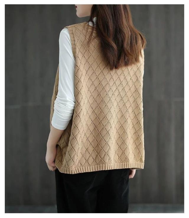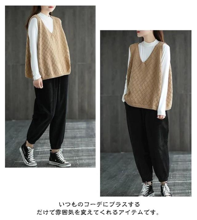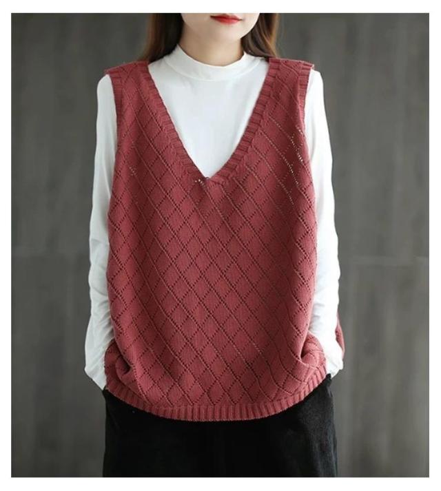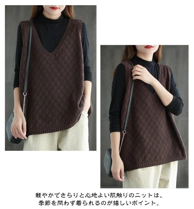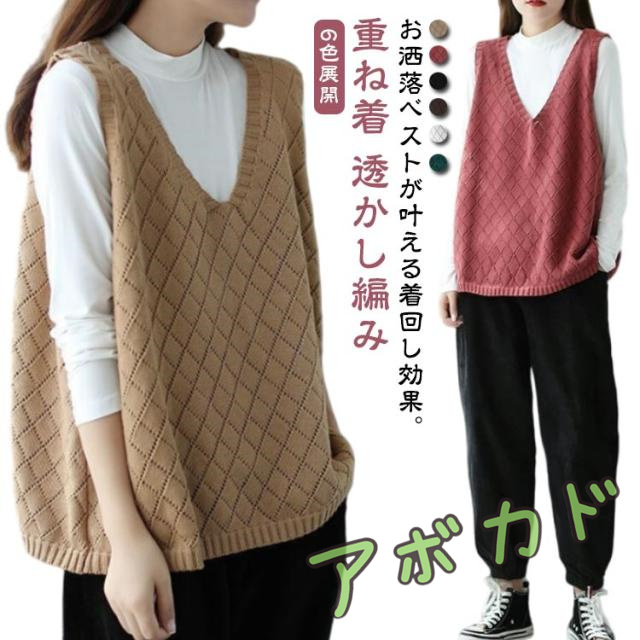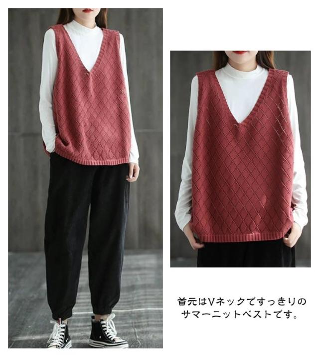 Vネック 無地 春夏 ノースリーブ 秋 透かし編み ニットベスト レディース サマーニット ベスト ニットベスト レイヤード プルオーバー セーター トップス ゆったり ミディアム丈 ストレッチ カジュアル 重ね着