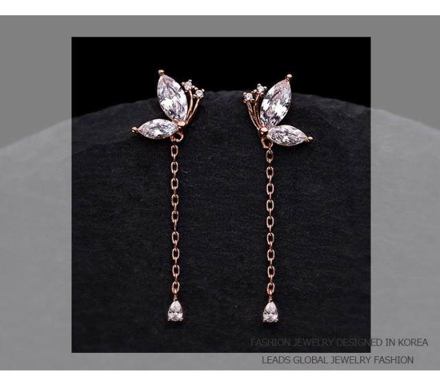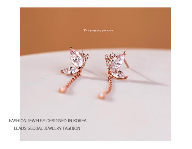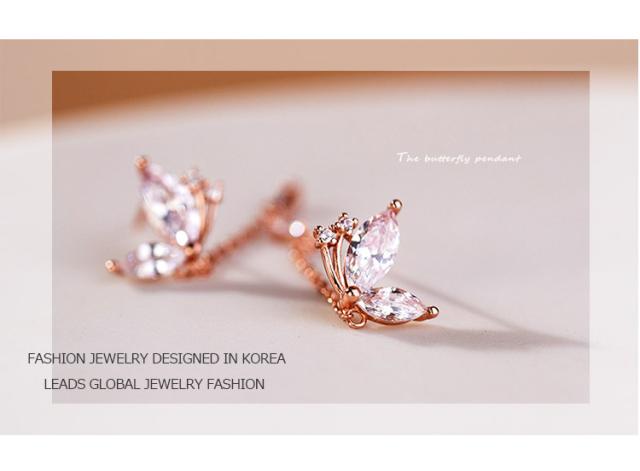 ピアス レディース CZダイヤ 揺れる 蝶々 18金 仕上げ 韓国ファッション アレルギー対応 ポイント消化 誕生日 母の日 プレゼント