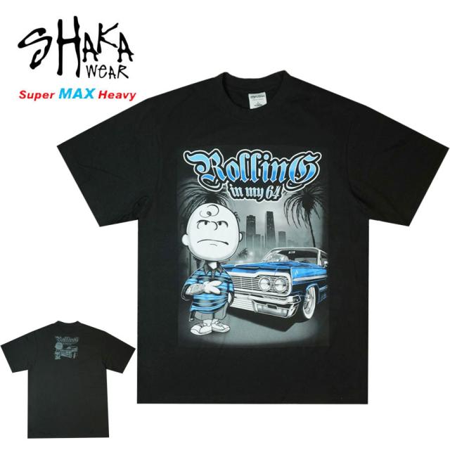メンズ Tシャツ【クリックポスト発送】SHAKA WEAR BODY シャカウェアボディ使用ROLLING IN MY 64 チャーリーブラウン Tシャツ黒 ブラック 両面 インパラキャラ ピーナッツ スヌーピー ロサンゼルスLA ラッパー モノトーン チカーノ チカーナ