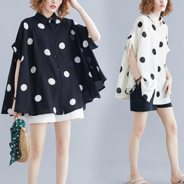 シフォン ドルマンブラウス シャツ ドット柄 個性的