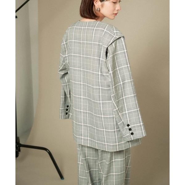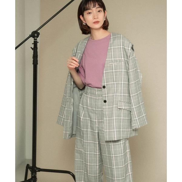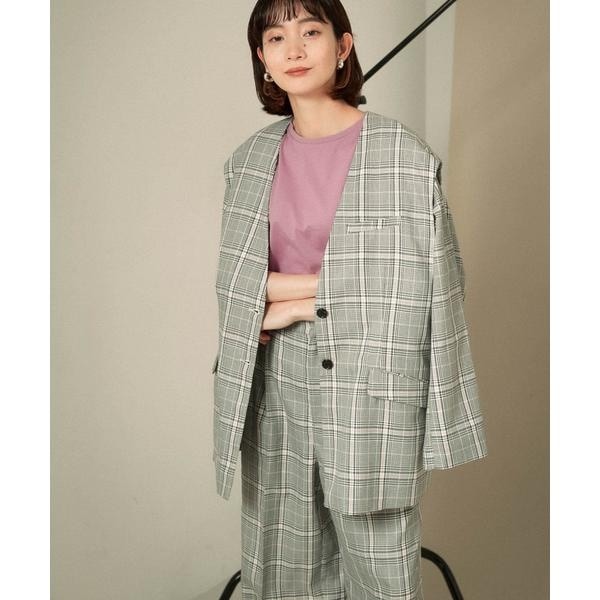 シンプルでメンズライクなゆったりシルエットが特徴的なジャケット。袖が取り外せる2WAY仕様、暑い季節はベストとしても着用が可能なので着回し力も抜群です。ゆったりシルエットですがノーカラーなので首周りはすっきり仕上げたのもポイント。