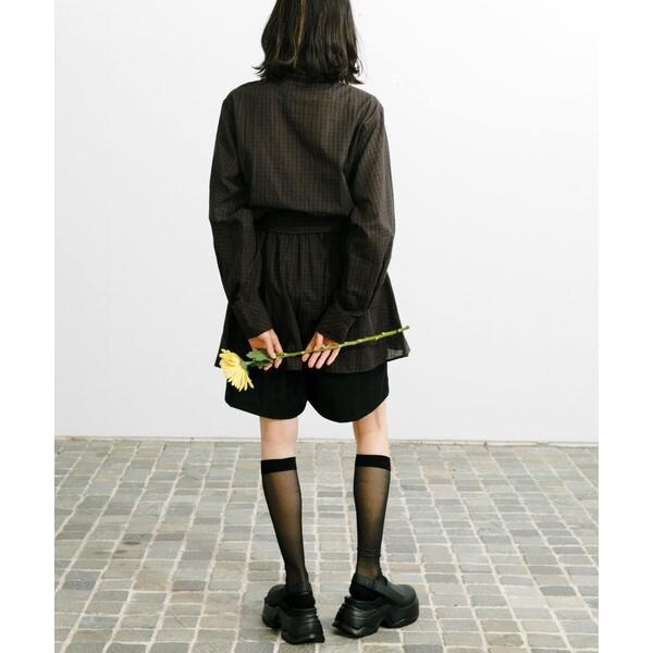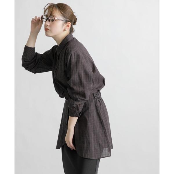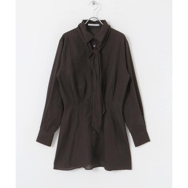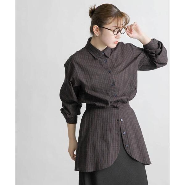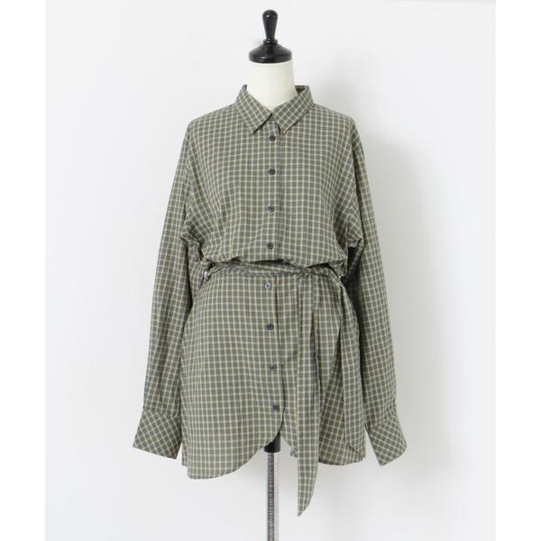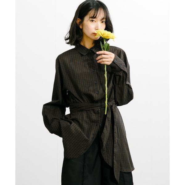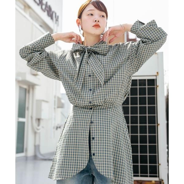 シャツとスカートをレイヤードしたようなシルエットが特徴的な変化球トップスが登場。ニュアンスカラーのチェック柄も魅力的。シャツは後ろゴム仕様になっており、ブラウジングして着ていただくのがおすすめ。付属のボウタイは取り外し可能で、気分によって首元に巻いたり腰に巻いたりと楽しめます。簡単にスタイルアップできるのでトレンドの韓国系コーデが叶います。