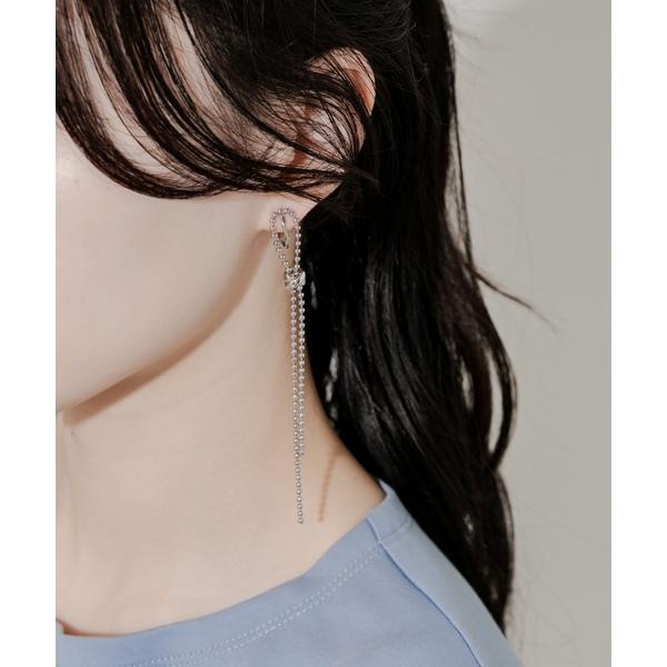 繊細なボールチェーンが縦に連なる、エッジが効いたデザインのロングイヤリング。