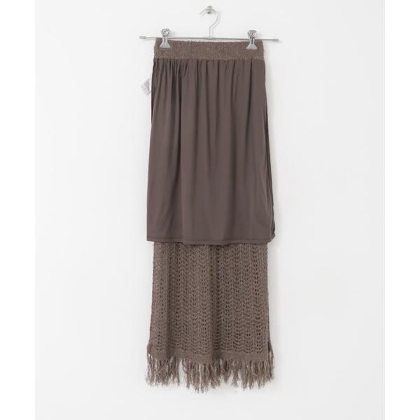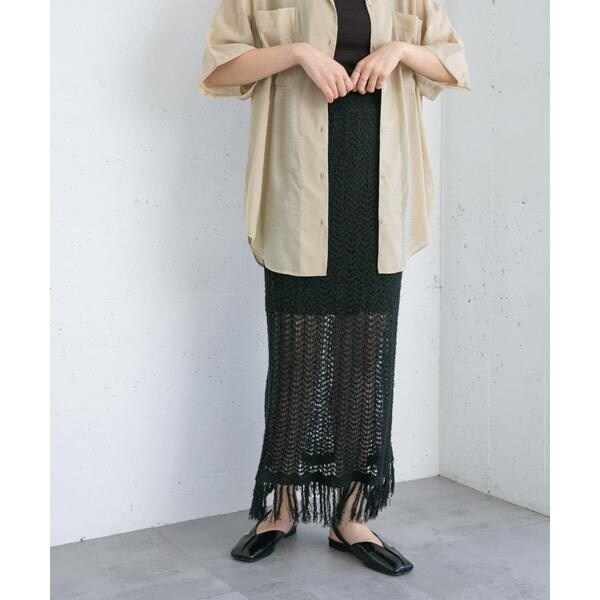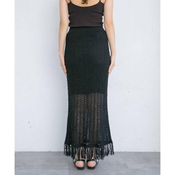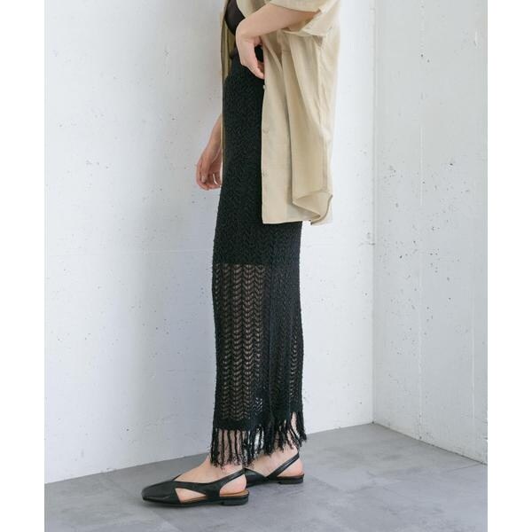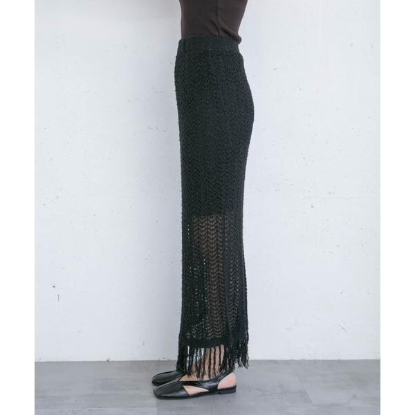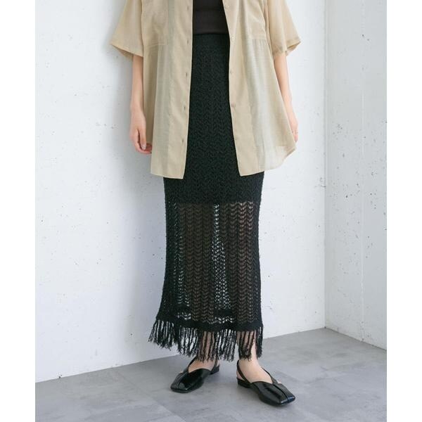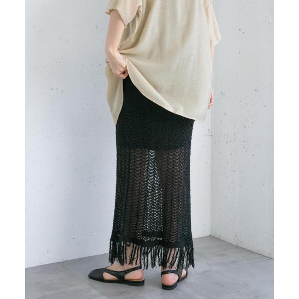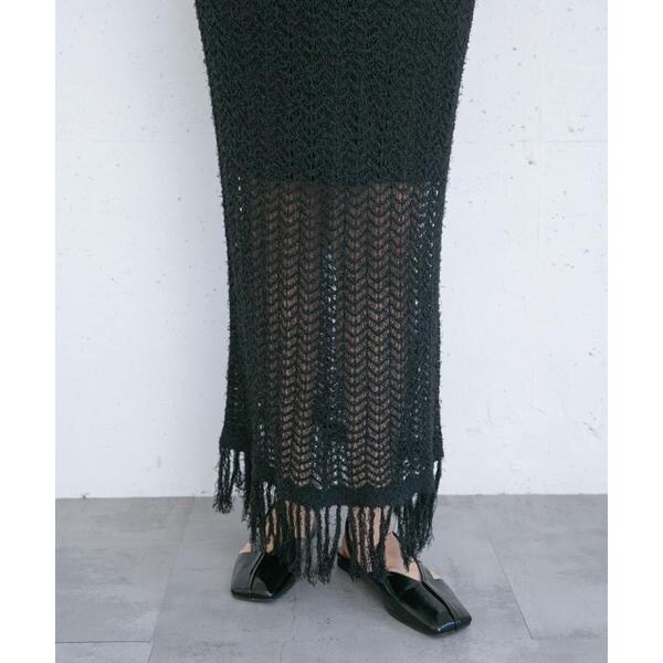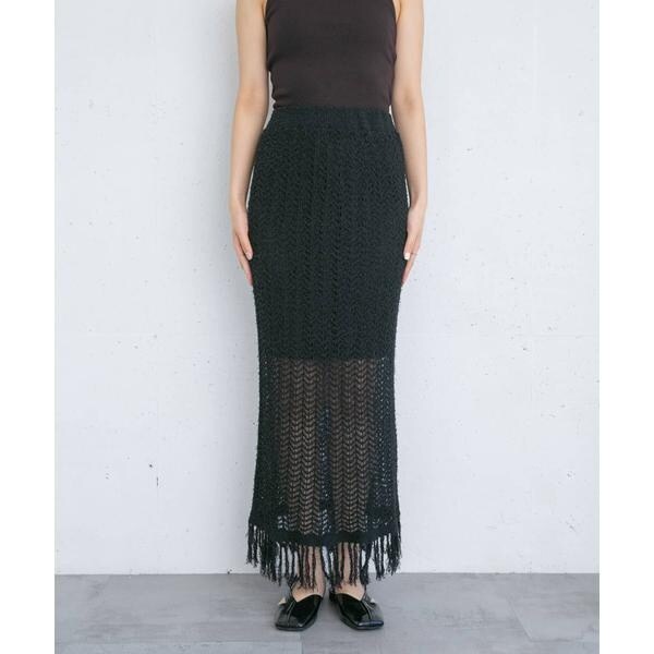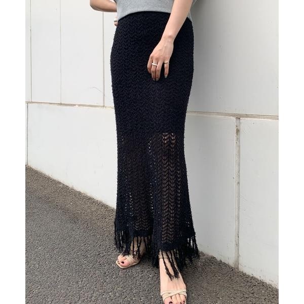 フリンジ透かし編みニットスカート