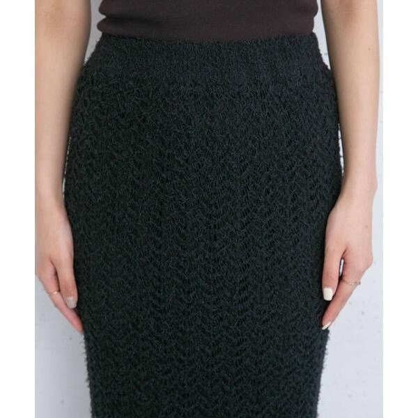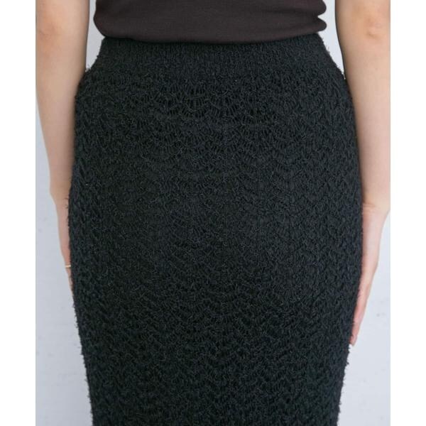 KBF(KBF)/フリンジ透かし編みニットスカート