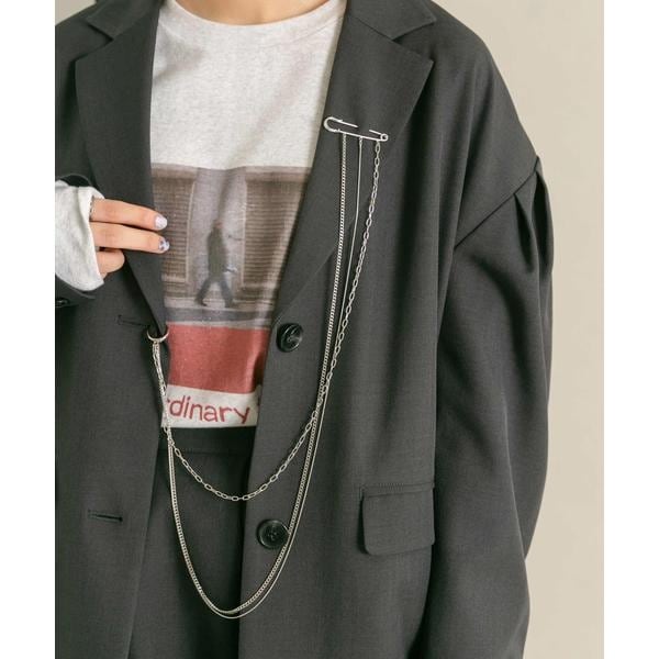 3種類のチェーンを組み合わせて作られたブローチ。ピンをジャケットの襟や胸元に付け、反対側の丸いパーツを釦ホールに通していただくスタイルがおすすめ。ボトムのベルトループに通し、チェーンベルトとしても活用できます。普段使いに取り入れやすいSILVERとGOLDの2色展開です。