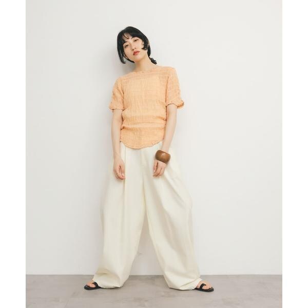 【シャーリングデザインがスタイリングを一層華やかにするトップス】