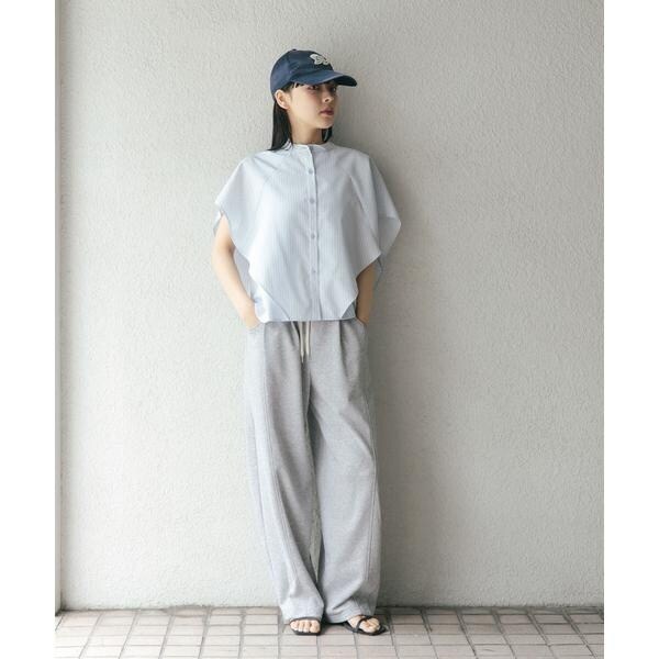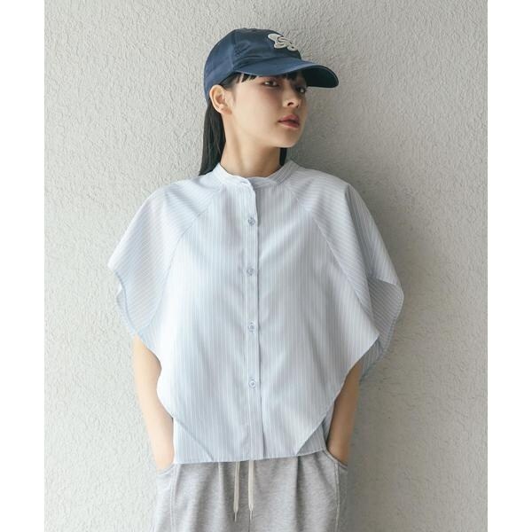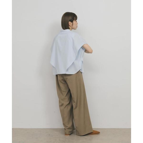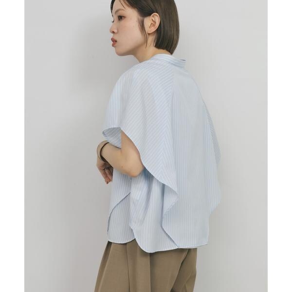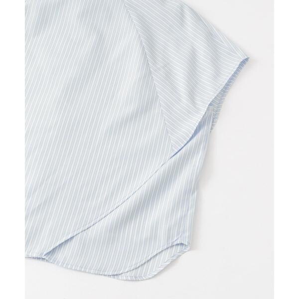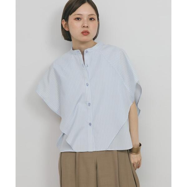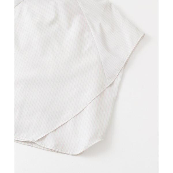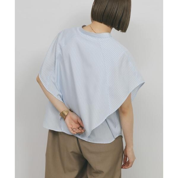 ボックスシルエットと、二の腕をしっかりとカバーしてくれるサイドのマチがポイントのストライプシャツ。肩から裾にかけてレイヤードされているので、軽やかなシルエットを演出します。また、身体のラインを拾いすぎず、滑らかな生地で暑くなる季節にぴったり。どのカラーも爽やかな印象に仕上げてくれます。