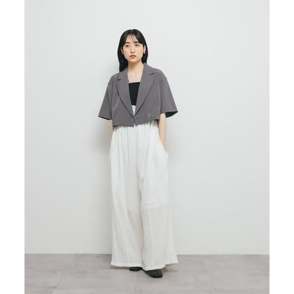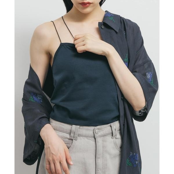 夏場でもさらっとした着心地が叶う、スムース素材を使用した取り外し可能なカップ付きキャミソール。華奢な肩紐は女性らしい印象を与え、バックのアシンメトリーデザインもポイントです。ナチュラルな肌見せや、シアーアイテムと好相性です。
