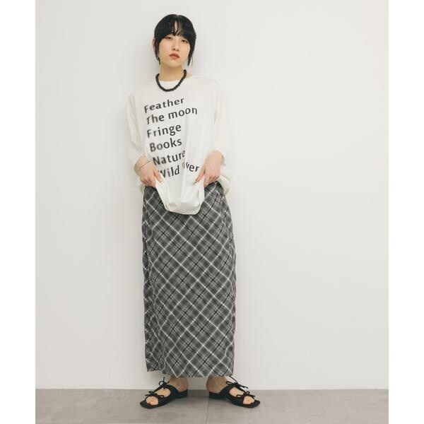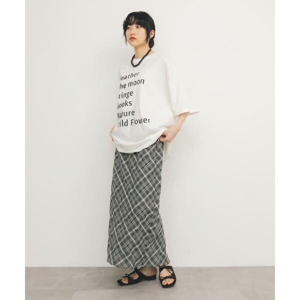 腰回りが隠れるオーバーサイズの着丈が特徴的なトップス。表面感のある素材を使用しており、取り入れるだけで簡単におしゃれにしてくれます。OATMEALとBROWNは無地ですが、OFFとCHARCOALはプリントが施されています。