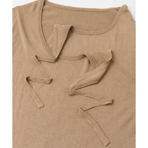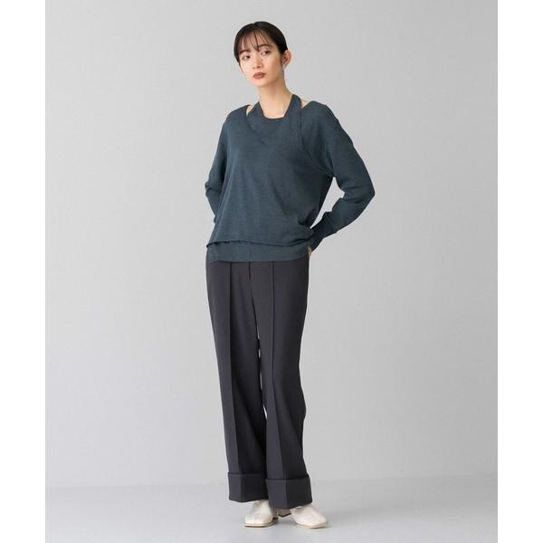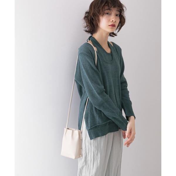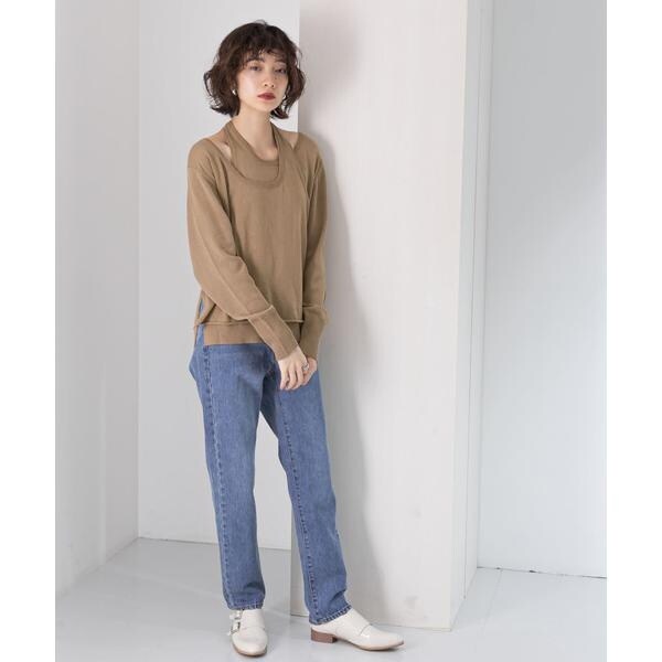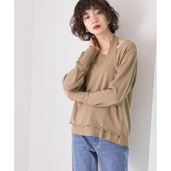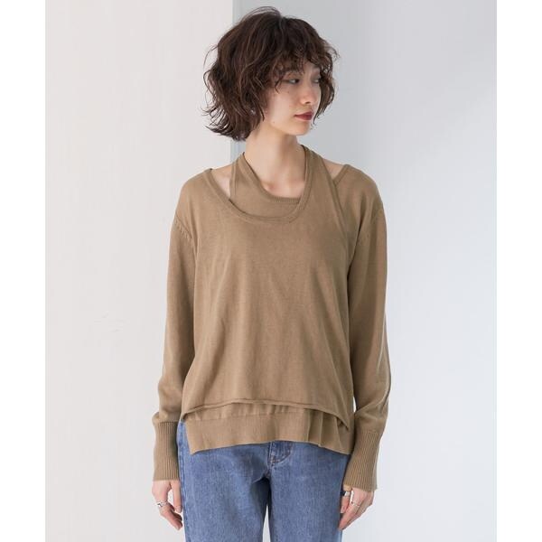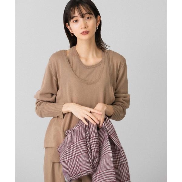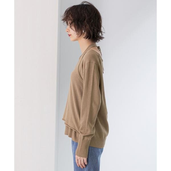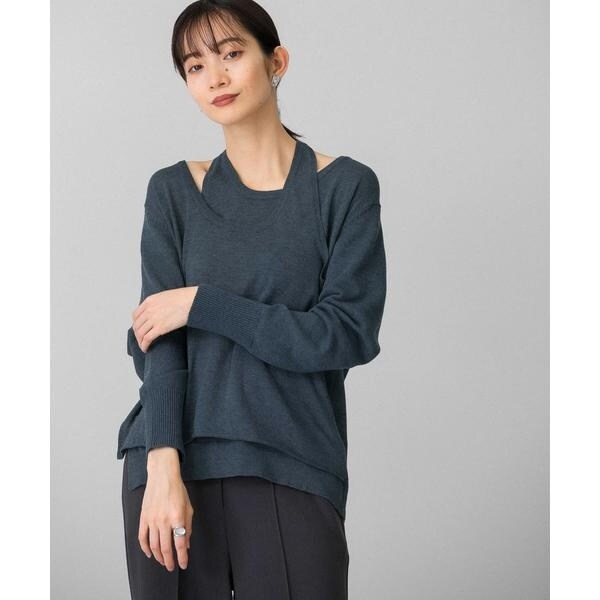 【レイヤードデザインの襟元が女性らしいニット】